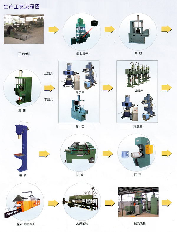 創辦于83年的泰州市羚驊機械有限公司是國內設計生產液化石油氣鋼瓶成套生產設備的企業。產品包括:開平落料線、封頭拉伸成型機、齊口機、縮口機、清理去毛剌機、沖孔機、焊瓶嘴機、焊護罩機、焊底座機、投瓶…